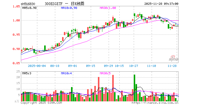 11月28日,300ESGETF(516830)开盘跌0.10%,报0.982元。300ESGETF(516830)重仓股方面,贵州茅台开盘跌0.06%,宁德时代跌0.19%,招商银行跌0.21%,中际旭创涨0.61%,长江电力跌0.28%,美的集团涨0.00%,比亚迪涨0.33%,兴业银行跌0.23%,工商银行跌0.12%,恒瑞医药涨0.43%。