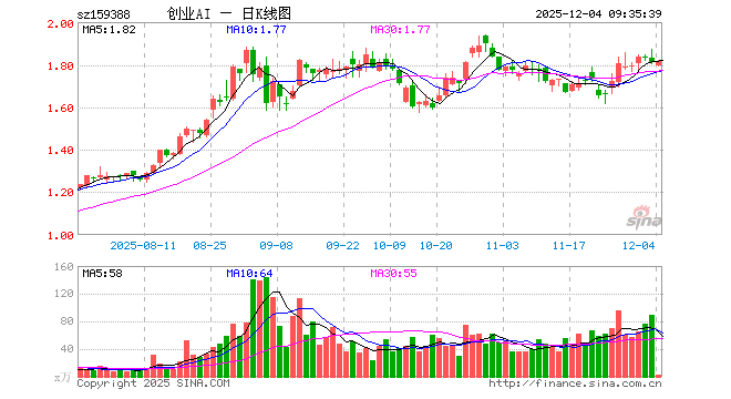 12月4日,创业板人工智能ETF国泰(159388)开盘跌0.99%,报1.794元。创业板人工智能ETF国泰(159388)重仓股方面,中际旭创开盘跌1.21%,新易盛跌1.61%,天孚通信跌1.89%,协创数据跌0.69%,软通动力涨0.09%,全志科技跌0.02%,深信服涨0.43%,北京君正跌2.66%,中科创达跌0.24%,景嘉微涨0.45%。