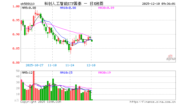 科创人工智能ETF国泰(589110)业绩比较基准为上证科创板人工智能指数收益率,管理人为国泰基金管理有限公司,基金经理为麻绎文,成立(2025-09-26)以来回报为-11.59%,近一个月回报为-2.05%。