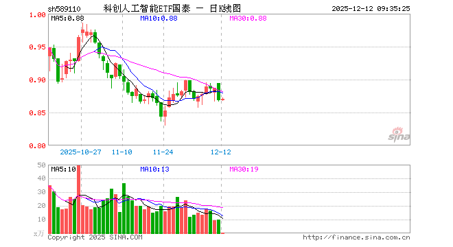 科创人工智能ETF国泰(589110)业绩比较基准为上证科创板人工智能指数收益率,管理人为国泰基金管理有限公司,基金经理为麻绎文,成立(2025-09-26)以来回报为-13.39%,近一个月回报为-1.46%。