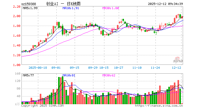12月12日,创业板人工智能ETF国泰(159388)开盘跌0.72%,报1.944元。创业板人工智能ETF国泰(159388)重仓股方面,中际旭创开盘涨0.03%,新易盛涨0.12%,天孚通信跌0.36%,协创数据涨0.01%,软通动力涨0.00%,全志科技跌0.14%,深信服涨0.05%,北京君正涨0.15%,中科创达涨0.22%,景嘉微跌0.51%。