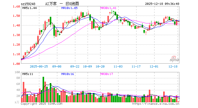 12月18日,人工智能ETF基金(159248)开盘跌1.44%,报1.434元。人工智能ETF基金(159248)重仓股方面,新易盛开盘跌1.99%,中际旭创跌2.20%,寒武纪跌1.19%,澜起科技跌0.79%,中科曙光跌1.37%,科大讯飞跌0.85%,豪威集团跌0.60%,海康威视跌0.38%,浪潮信息跌1.30%,金山办公跌1.03%。