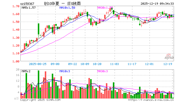 12月19日,创业板50ETF华夏(159367)开盘涨0.45%,报1.563元。创业板50ETF华夏(159367)重仓股方面,宁德时代开盘涨0.56%,中际旭创涨2.13%,东方财富涨0.04%,新易盛涨2.47%,阳光电源涨1.06%,胜宏科技涨1.73%,汇川技术涨0.48%,迈瑞医疗跌0.04%,亿纬锂能涨0.85%,同花顺涨0.13%。