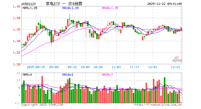 家电ETF(561120)业绩比较基准为中证全指家用电器指数收益率,管理人为富国基金管理有限公司,基金经理为牛志冬,成立(2022-01-25)以来回报为34.86%,近一个月回报为1.44%。