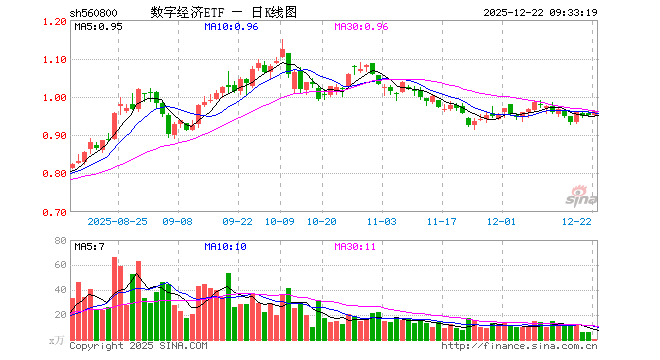 12月22日,数字经济ETF(560800)开盘涨0.11%,报0.952元。数字经济ETF(560800)重仓股方面,东方财富开盘跌0.09%,中芯国际涨0.85%,寒武纪涨0.55%,海光信息涨0.72%,北方华创涨0.15%,澜起科技涨0.80%,中科曙光涨1.33%,汇川技术涨0.39%,兆易创新涨1.57%。