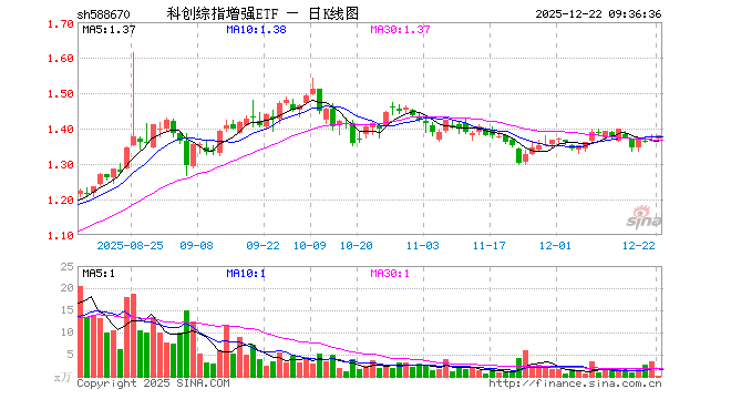 科创综指增强ETF(588670)业绩比较基准为上证科创板综合指数收益率,管理人为嘉实基金管理有限公司,基金经理为龙昌伦、尚可,成立(2025-06-05)以来回报为36.58%,近一个月回报为0.37%。