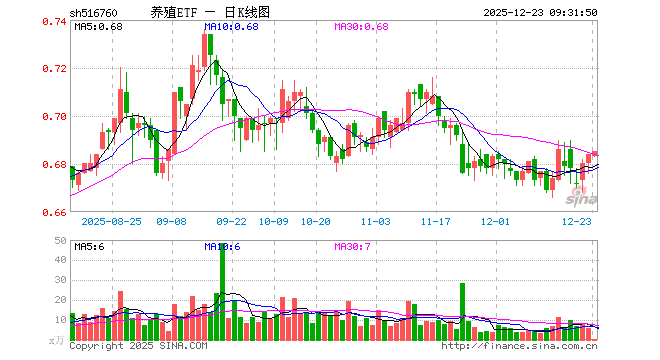 12月23日,养殖ETF(516760)开盘跌0.15%,报0.683元。养殖ETF(516760)重仓股方面,牧原股份开盘跌0.08%,温氏股份跌0.12%,海大集团涨0.06%,新希望涨0.00%,梅花生物涨0.10%,大北农涨0.00%,圣农发展跌0.24%,生物股份涨0.56%,天康生物跌0.27%,立华股份涨0.00%。
