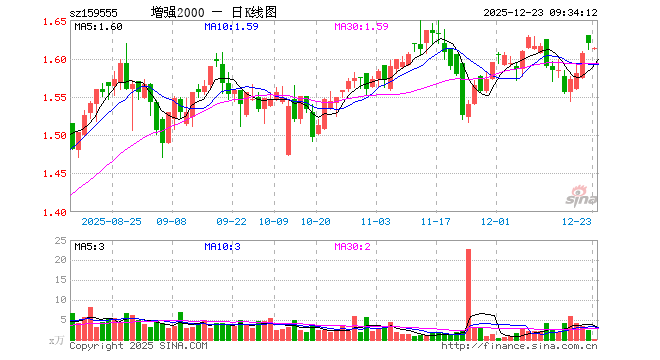 2000增强ETF(159555)业绩比较基准为中证2000指数收益率,管理人为银华基金管理股份有限公司,基金经理为张凯、张亦驰,成立(2023-12-01)以来回报为61.75%,近一个月回报为6.72%。