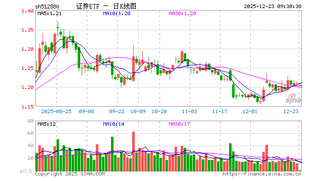 12月23日,证券ETF(512880)开盘涨0.00%,报1.211元。证券ETF(512880)重仓股方面,东方财富开盘跌0.09%,中信证券涨0.10%,国泰海通跌0.05%,华泰证券跌0.74%,广发证券涨0.05%,招商证券涨0.18%,东方证券涨0.09%,申万宏源涨0.00%,兴业证券涨0.00%,中金公司跌0.19%。