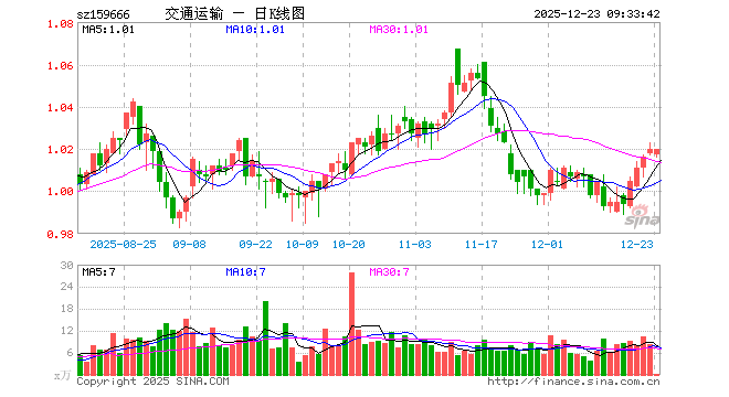12月23日,交通运输ETF(159666)开盘跌0.29%,报1.017元。交通运输ETF(159666)重仓股方面,京沪高铁开盘涨0.00%,顺丰控股涨0.03%,中远海控涨0.13%,大秦铁路涨0.00%,上海机场涨0.00%,中国东航跌0.17%,南方航空跌0.13%,圆通速递跌0.48%,中国国航跌0.11%,招商轮船跌2.80%。