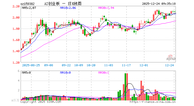 12月24日,创业板人工智能ETF南方(159382)开盘涨0.29%,报2.102元。创业板人工智能ETF南方(159382)重仓股方面,中际旭创开盘涨1.07%,新易盛涨0.43%,天孚通信跌0.47%,协创数据涨0.26%,软通动力涨0.00%,全志科技涨0.15%,深信服跌0.75%,北京君正涨2.82%,中科创达涨0.27%,景嘉微跌0.13%。