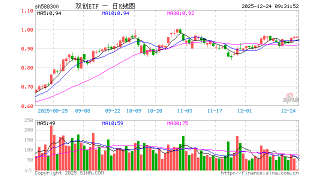 12月24日,双创ETF(588300)开盘跌0.21%,报0.955元。双创ETF(588300)重仓股方面,宁德时代开盘跌0.01%,新易盛涨0.43%,中际旭创涨1.07%,寒武纪跌0.08%,中芯国际涨2.17%,阳光电源跌1.12%,海光信息跌0.24%,澜起科技跌0.41%,胜宏科技涨1.60%,汇川技术跌0.10%。