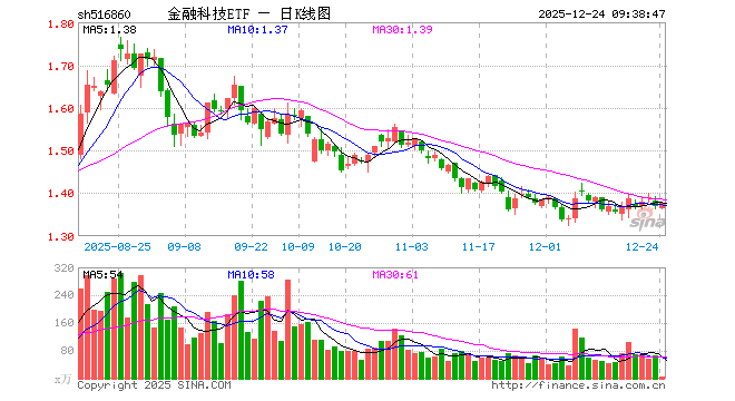 12月24日,金融科技ETF(516860)开盘跌0.36%,报1.365元。金融科技ETF(516860)重仓股方面,同花顺开盘跌0.35%,东方财富跌0.30%,指南针跌0.65%,恒生电子跌0.34%,润和软件涨0.04%,东华软件涨0.00%,银之杰跌1.01%,新大陆跌0.23%,广电运通跌0.49%,大智慧跌0.95%。