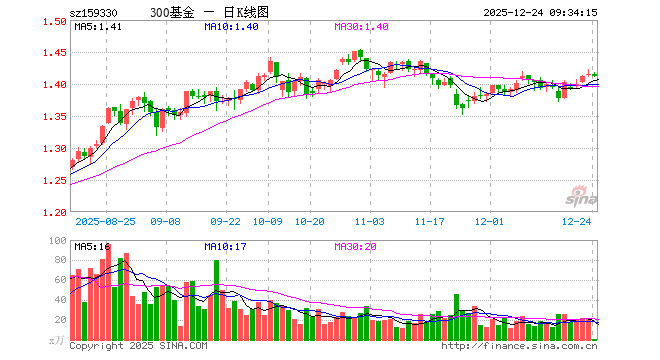 12月24日,沪深300ETF东财(159330)开盘涨0.00%,报1.415元。沪深300ETF东财(159330)重仓股方面,宁德时代开盘跌0.01%,贵州茅台跌0.20%,中国平安跌0.46%,招商银行涨0.05%,紫金矿业涨1.40%,新易盛涨0.43%,美的集团跌0.28%,中际旭创涨1.07%,东方财富跌0.30%,长江电力跌0.04%。