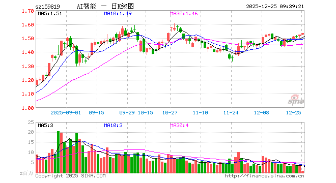 12月25日,人工智能ETF(159819)开盘涨0.13%,报1.524元。人工智能ETF(159819)重仓股方面,新易盛开盘涨0.55%,中际旭创涨1.67%,寒武纪跌0.84%,澜起科技涨0.16%,中科曙光涨0.03%,科大讯飞涨0.14%,豪威集团跌0.33%,海康威视涨0.03%,浪潮信息跌0.03%,金山办公涨0.32%。