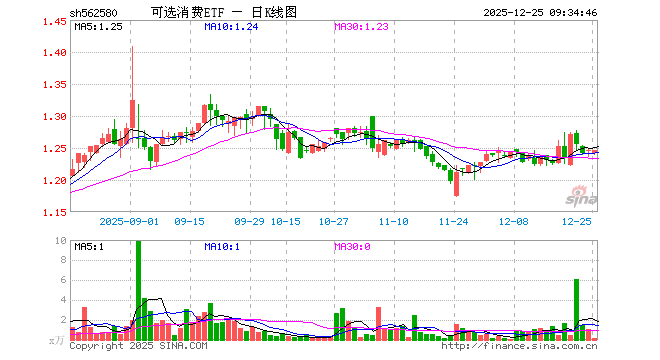 12月25日,可选消费ETF(562580)开盘跌0.32%,报1.242元。可选消费ETF(562580)重仓股方面,美的集团开盘跌0.36%,比亚迪涨0.01%,格力电器跌0.07%,赛力斯涨0.00%,福耀玻璃跌0.03%,三花智控涨0.91%,海尔智家跌0.15%,上汽集团跌0.06%,拓普集团涨0.06%,中国中免跌0.98%。