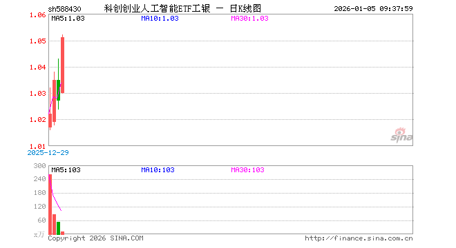 科创创业人工智能ETF工银(588430)业绩比较基准为中证科创创业人工智能指数收益率,管理人为工银瑞信基金管理有限公司,基金经理为杨广钊,成立(2025-12-17)以来回报为2.88%。