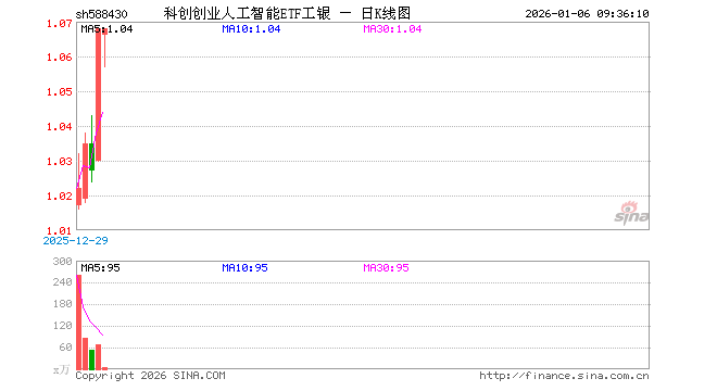 科创创业人工智能ETF工银(588430)业绩比较基准为中证科创创业人工智能指数收益率,管理人为工银瑞信基金管理有限公司,基金经理为杨广钊,成立(2025-12-17)以来回报为6.99%。