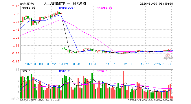 1月7日,人工智能ETF(515980)开盘涨0.11%,报0.907元。人工智能ETF(515980)重仓股方面,中科曙光开盘涨0.03%,新易盛涨2.03%,寒武纪跌0.95%,中际旭创涨1.91%,澜起科技涨5.60%,豪威集团涨0.70%,浪潮信息涨0.09%,和而泰跌2.97%,协创数据涨5.63%,海康威视涨0.23%。