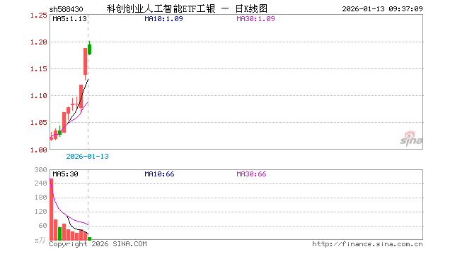 1月13日,科创创业人工智能ETF工银(588430)开盘涨0.59%,报1.194元。科创创业人工智能ETF工银(588430)重仓股方面,新易盛开盘跌1.56%,中际旭创跌1.89%,澜起科技涨0.00%,寒武纪跌1.65%,金山办公涨3.93%,芯原股份涨0.23%,润泽科技涨0.31%,昆仑万维涨7.99%,协创数据涨2.00%,石头科技涨0.54%。