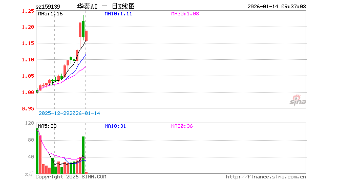 1月14日,科创创业人工智能ETF华泰柏瑞(159139)开盘跌0.86%,报1.156元。科创创业人工智能ETF华泰柏瑞(159139)重仓股方面,新易盛开盘涨1.25%,中际旭创涨1.64%,澜起科技涨1.92%,寒武纪涨0.85%,金山办公跌0.22%,芯原股份涨0.63%,润泽科技跌0.10%,昆仑万维跌0.33%,协创数据涨0.26%,北京君正涨1.22%。