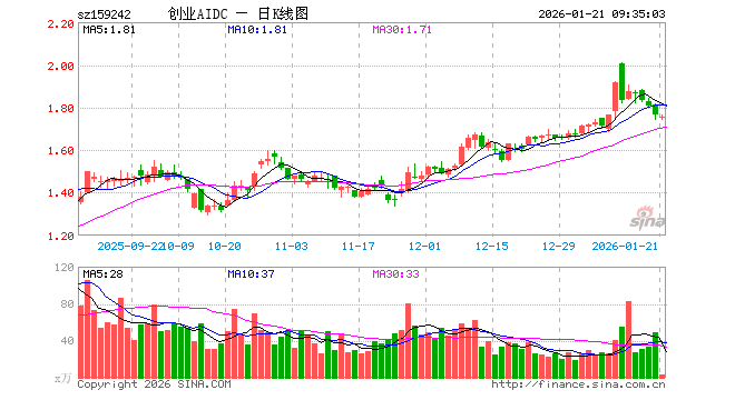 1月21日,创业板人工智能ETF大成(159242)开盘跌0.79%,报1.750元。创业板人工智能ETF大成(159242)重仓股方面,中际旭创开盘涨0.21%,新易盛涨0.12%,天孚通信跌0.41%,协创数据跌0.67%,软通动力跌0.92%,全志科技跌3.34%,深信服跌1.34%,北京君正涨0.00%,中科创达跌1.21%,景嘉微跌0.78%。