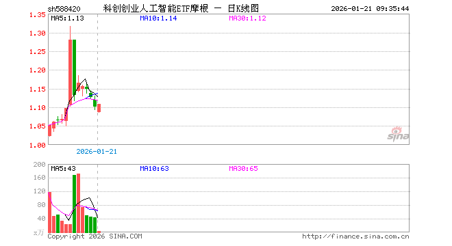 科创创业人工智能ETF摩根(588420)业绩比较基准为中证科创创业人工智能指数收益率,管理人为摩根基金管理(中国)有限公司,基金经理为曲蕾蕾,成立(2025-12-17)以来回报为10.35%,近一个月回报为10.48%。