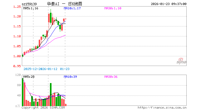 1月23日,科创创业人工智能ETF华泰柏瑞(159139)开盘涨0.00%,报1.186元。科创创业人工智能ETF华泰柏瑞(159139)重仓股方面,新易盛开盘跌0.94%,中际旭创跌1.13%,澜起科技跌2.80%,寒武纪跌1.18%,金山办公涨0.01%,芯原股份跌1.51%,润泽科技涨0.33%,昆仑万维涨0.80%,协创数据涨0.75%,北京君正跌2.12%。