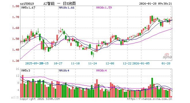 1月28日,人工智能ETF易方达(159819)开盘涨0.78%,报1.689元。人工智能ETF易方达(159819)重仓股方面,中际旭创开盘涨2.66%,新易盛涨1.44%,寒武纪涨0.69%,澜起科技涨1.17%,中科曙光涨0.55%,科大讯飞涨0.60%,海康威视涨0.19%,豪威集团跌0.05%,金山办公涨0.27%,浪潮信息涨0.66%。