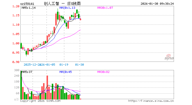 1月30日,科创创业人工智能ETF永赢(159141)开盘跌1.06%,报1.122元。科创创业人工智能ETF永赢(159141)重仓股方面,中际旭创开盘涨0.38%,新易盛跌1.15%,寒武纪跌0.00%,澜起科技跌1.05%,金山办公跌0.93%,芯原股份跌0.05%,润泽科技涨1.24%,协创数据涨0.35%,昆仑万维跌1.43%,北京君正涨0.60%。