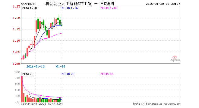 科创创业人工智能ETF工银(588430)业绩比较基准为中证科创创业人工智能指数收益率,管理人为工银瑞信基金管理有限公司,基金经理为杨广钊,成立(2025-12-17)以来回报为16.71%,近一个月回报为14.09%。