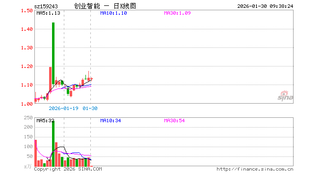 1月30日,创业板人工智能ETF招商(159243)开盘跌0.62%,报1.129元。创业板人工智能ETF招商(159243)重仓股方面,中际旭创开盘涨0.38%,新易盛跌1.15%,天孚通信跌1.39%,同花顺跌0.42%,润和软件跌0.93%,北京君正涨0.60%,润泽科技涨1.24%,昆仑万维跌1.43%,蓝色光标跌2.56%,长芯博创跌2.64%。