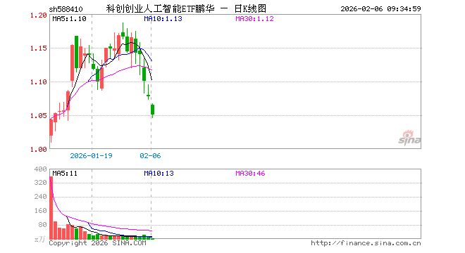 科创创业人工智能ETF鹏华(588410)业绩比较基准为中证科创创业人工智能指数收益率,管理人为鹏华基金管理有限公司,基金经理为林嵩,成立(2025-12-17)以来回报为7.68%,近一个月回报为2.76%。