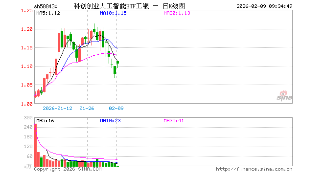 2月9日,科创创业人工智能ETF工银(588430)开盘涨3.06%,报1.112元。科创创业人工智能ETF工银(588430)重仓股方面,新易盛开盘涨4.37%,中际旭创涨3.89%,澜起科技涨4.49%,寒武纪涨2.22%,金山办公涨1.38%,芯原股份涨4.33%,昆仑万维涨7.66%,协创数据涨3.07%,石头科技涨0.77%。