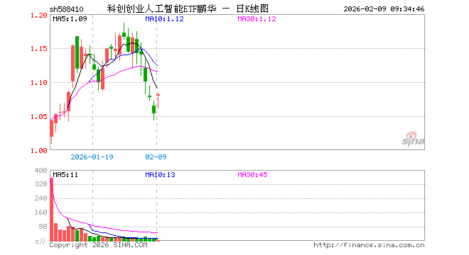 科创创业人工智能ETF鹏华(588410)业绩比较基准为中证科创创业人工智能指数收益率,管理人为鹏华基金管理有限公司,基金经理为林嵩,成立(2025-12-17)以来回报为5.17%,近一个月回报为-0.61%。
