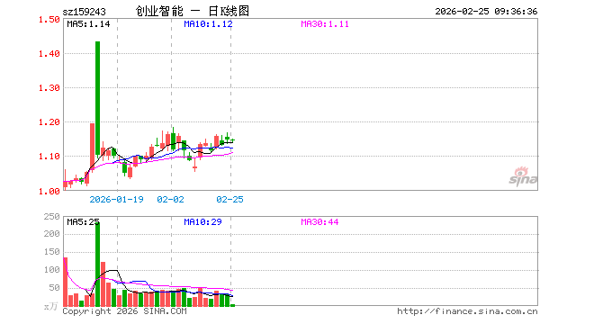 2月25日,创业板人工智能ETF招商(159243)开盘跌0.17%,报1.146元。创业板人工智能ETF招商(159243)重仓股方面,中际旭创开盘跌0.72%,新易盛跌0.55%,天孚通信涨0.37%,同花顺涨0.05%,润和软件涨0.12%,北京君正跌1.31%,润泽科技涨1.41%,昆仑万维跌1.59%,蓝色光标跌0.97%,长芯博创涨3.58%。