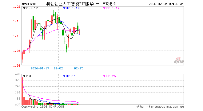 科创创业人工智能ETF鹏华(588410)业绩比较基准为中证科创创业人工智能指数收益率,管理人为鹏华基金管理有限公司,基金经理为林嵩,成立(2025-12-17)以来回报为11.72%,近一个月回报为-2.80%。