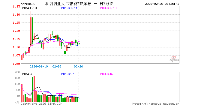 科创创业人工智能ETF摩根(588420)业绩比较基准为中证科创创业人工智能指数收益率,管理人为摩根基金管理(中国)有限公司,基金经理为曲蕾蕾,成立(2025-12-17)以来回报为11.88%,近一个月回报为-3.21%。
