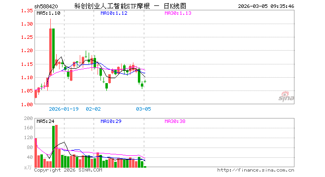 科创创业人工智能ETF摩根(588420)业绩比较基准为中证科创创业人工智能指数收益率,管理人为摩根基金管理(中国)有限公司,基金经理为曲蕾蕾,成立(2025-12-17)以来回报为5.90%,近一个月回报为-4.03%。