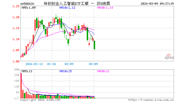 3月9日,科创创业人工智能ETF工银(588430)开盘跌1.09%,报1.092元。科创创业人工智能ETF工银(588430)重仓股方面,新易盛开盘跌5.47%,中际旭创跌4.65%,澜起科技跌4.36%,寒武纪跌3.02%,金山办公跌1.45%,芯原股份跌8.45%,润泽科技跌2.32%,昆仑万维跌1.54%,协创数据跌2.39%,石头科技跌1.20%。