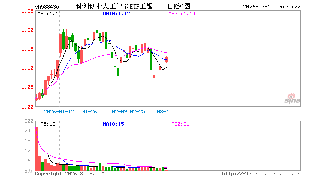 科创创业人工智能ETF工银(588430)业绩比较基准为中证科创创业人工智能指数收益率,管理人为工银瑞信基金管理有限公司,基金经理为杨广钊,成立(2025-12-17)以来回报为9.27%,近一个月回报为-3.22%。