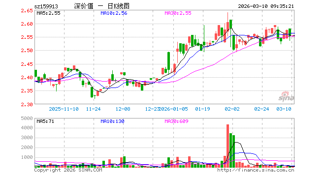 深价值ETF交银(159913)业绩比较基准为深证300价值价格指数,管理人为交银施罗德基金管理有限公司,基金经理为邵文婷,成立(2011-09-22)以来回报为154.40%,近一个月回报为-0.27%。