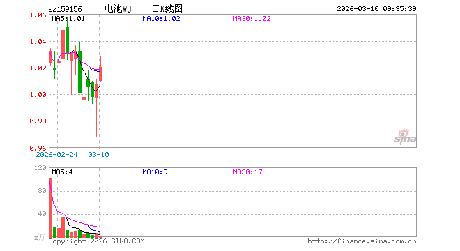 3月10日,电池ETF万家(159156)开盘涨0.30%,报1.010元。电池ETF万家(159156)重仓股方面,比亚迪开盘跌0.35%,宁德时代涨4.90%,华友钴业涨1.68%,三花智控涨1.38%,亿纬锂能涨0.69%,赣锋锂业涨1.53%,先导智能涨2.30%,厦门钨业涨1.26%,天赐材料涨2.93%,格林美涨1.32%。