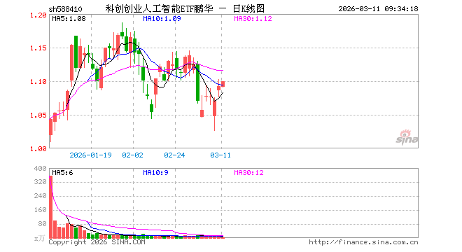 科创创业人工智能ETF鹏华(588410)业绩比较基准为中证科创创业人工智能指数收益率,管理人为鹏华基金管理有限公司,基金经理为林嵩,成立(2025-12-17)以来回报为9.33%,近一个月回报为-2.55%。