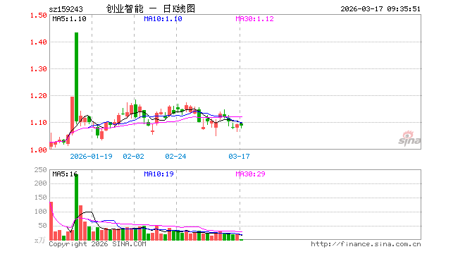 3月17日,创业板人工智能ETF招商(159243)开盘涨0.18%,报1.095元。创业板人工智能ETF招商(159243)重仓股方面,中际旭创开盘涨1.48%,新易盛涨2.12%,天孚通信跌7.45%,同花顺涨0.38%,润和软件跌0.02%,北京君正跌0.73%,润泽科技涨1.30%,昆仑万维涨0.22%,蓝色光标涨0.52%,长芯博创涨0.63%。