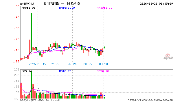 3月20日,创业板人工智能ETF招商(159243)开盘涨1.54%,报1.123元。创业板人工智能ETF招商(159243)重仓股方面,中际旭创开盘涨5.18%,新易盛涨6.27%,天孚通信涨8.77%,同花顺涨0.21%,润和软件涨0.00%,北京君正涨0.16%,润泽科技跌1.95%,昆仑万维跌2.42%,蓝色光标涨0.80%,长芯博创涨3.72%。