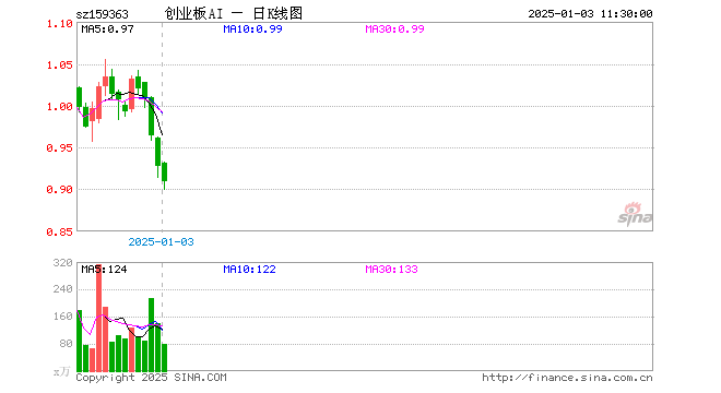 1月3日,截止午间收盘,创业板人工智能ETF华宝(159363)跌2.05%,报0.909元,成交额7155.67万元。创业板人工智能ETF华宝(159363)重仓股方面,新易盛截止午盘涨4.57%,中际旭创涨2.08%,软通动力跌2.88%,天孚通信跌0.50%,同花顺跌2.17%,润和软件跌3.40%,景嘉微跌0.53%,网宿科技跌6.92%,蓝色光标跌4.76%,北京君正跌0.98%。