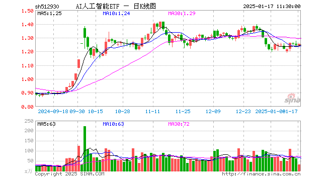 AI人工智能ETF(512930)业绩比较基准为中证人工智能主题指数收益率,管理人为平安基金管理有限公司,基金经理为刘洁倩,成立(2019-07-12)以来回报为44.50%,近一个月回报为-3.93%。