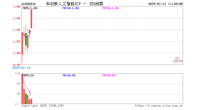 1月21日,截止午间收盘,科创板人工智能ETF(588930)涨3.37%,报1.074元,成交额2070.12万元。科创板人工智能ETF(588930)重仓股方面,寒武纪截止午盘涨1.42%,石头科技跌0.26%,澜起科技涨3.54%,金山办公跌0.31%,恒玄科技涨8.29%,晶晨股份涨11.94%,芯原股份涨5.65%,乐鑫科技涨16.43%,中科星图涨1.47%,复旦微电涨1.18%。