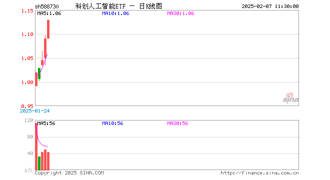 2月7日,截止午间收盘,科创人工智能ETF(588730)涨3.58%,报1.129元,成交额4799.00万元。科创人工智能ETF(588730)重仓股方面,寒武纪截止午盘涨7.37%,石头科技涨2.05%,澜起科技涨3.74%,金山办公涨1.47%,晶晨股份涨4.61%,恒玄科技涨2.42%,芯原股份涨4.28%,乐鑫科技跌0.07%,中科星图涨3.82%,复旦微电涨2.46%。